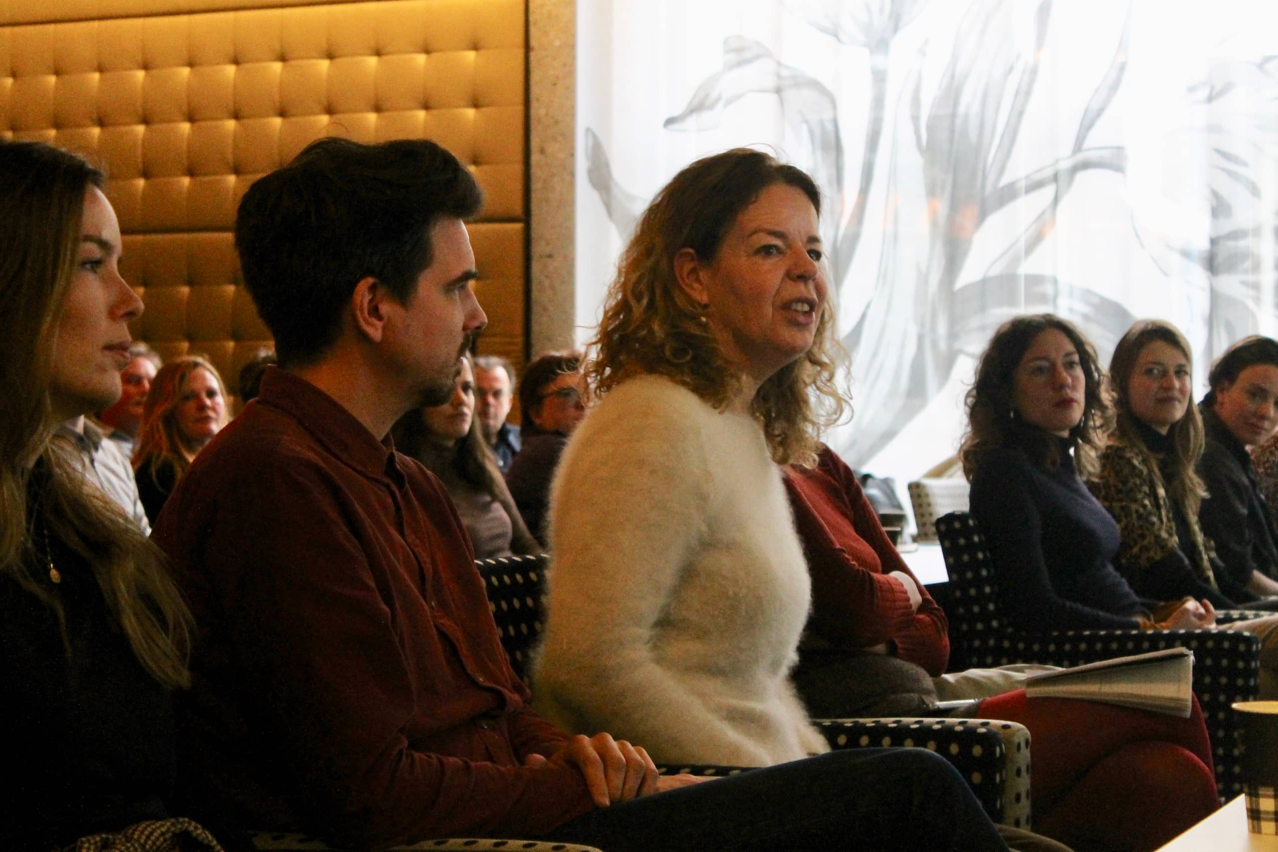 Duurzaamheid blijkt vanzelfsprekend in de verhalen van de jonge ontwerpers. Marjan van Aubel vertelt over een zonnecelontwerp voor het gigantische gebouw van het ministerie van financiën. Met een esthetisch extraatje. ‘’s Nachts zie je via de verlichting het skelet van het oorspronkelijke brutalistische ontwerp van het gerenoveerde gebouw.’