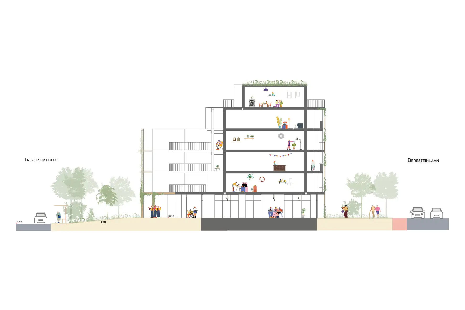 Twee teams van ontwerpers en zorgprofessionals hebben deelgenomen aan de Woonzorgchallenge voor de pilotlocatie in Den Haag Zuidwest. Het complex bestaat uit 74 zelfstandige appartementen voor senioren en de woonlocatie van Middin met 3 woongroepen voor mensen met een verstandelijke beperking. In een uniek co-creatieproces onder begeleiding van het College van Rijksbouwmeester en Rijksadviseurs (CRa) hebben de ontwerpteams samen met bewoners, woningcorporatie Staedion, zorgaanbieder Middin, de gemeente Den Haag en andere betrokkenen in de wijk naar een nieuw woonzorgconcept voor een wooncomplex aan de Beresteinlaan gezocht. Beide ontwerpteams hebben interessante concepten opgeleverd. Het eindconcept van team Over & Weer is geselecteerd om gedetailleerd getoetst te worden op haalbaarheid.