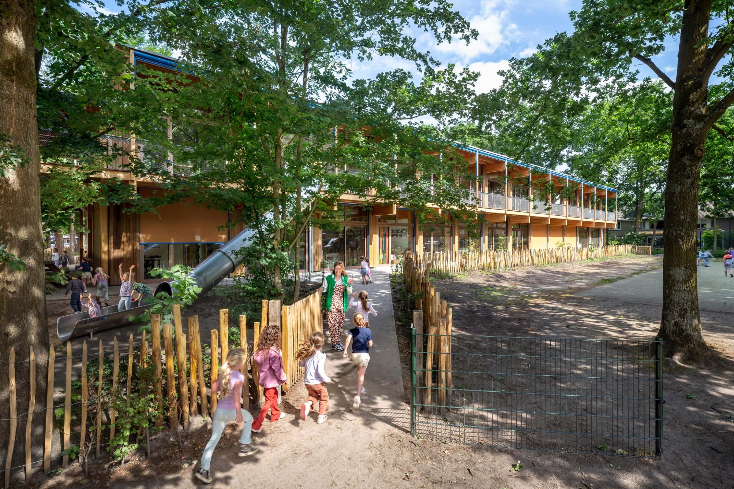 Een ‘integraal kindcentrum’ bundelt meerdere onderwijs- en opvangconcepten, met hier in totaal ruimte voor 325 kinderen. Een ontwerpend onderzoek bracht in beeld wat de mogelijkheden van zowel vernieuwbouw als complete nieuwbouw waren, waarna de gemeente ervoor koos het bestaande casco uit de jaren 70 van de vorige eeuw als basis te gebruiken. Bij de ‘vernieuwbouw’ vond onder meer de toevoeging plaats van een duurzame houten draagconstructie voor het nieuwbouwgedeelte. De nieuwbouw omvat nu groepsruimtes maar kan in de toekomst ook voor andere functies worden gebruikt. De buitenspeelruimtes hebben ook een functie voor de omliggende buurt.