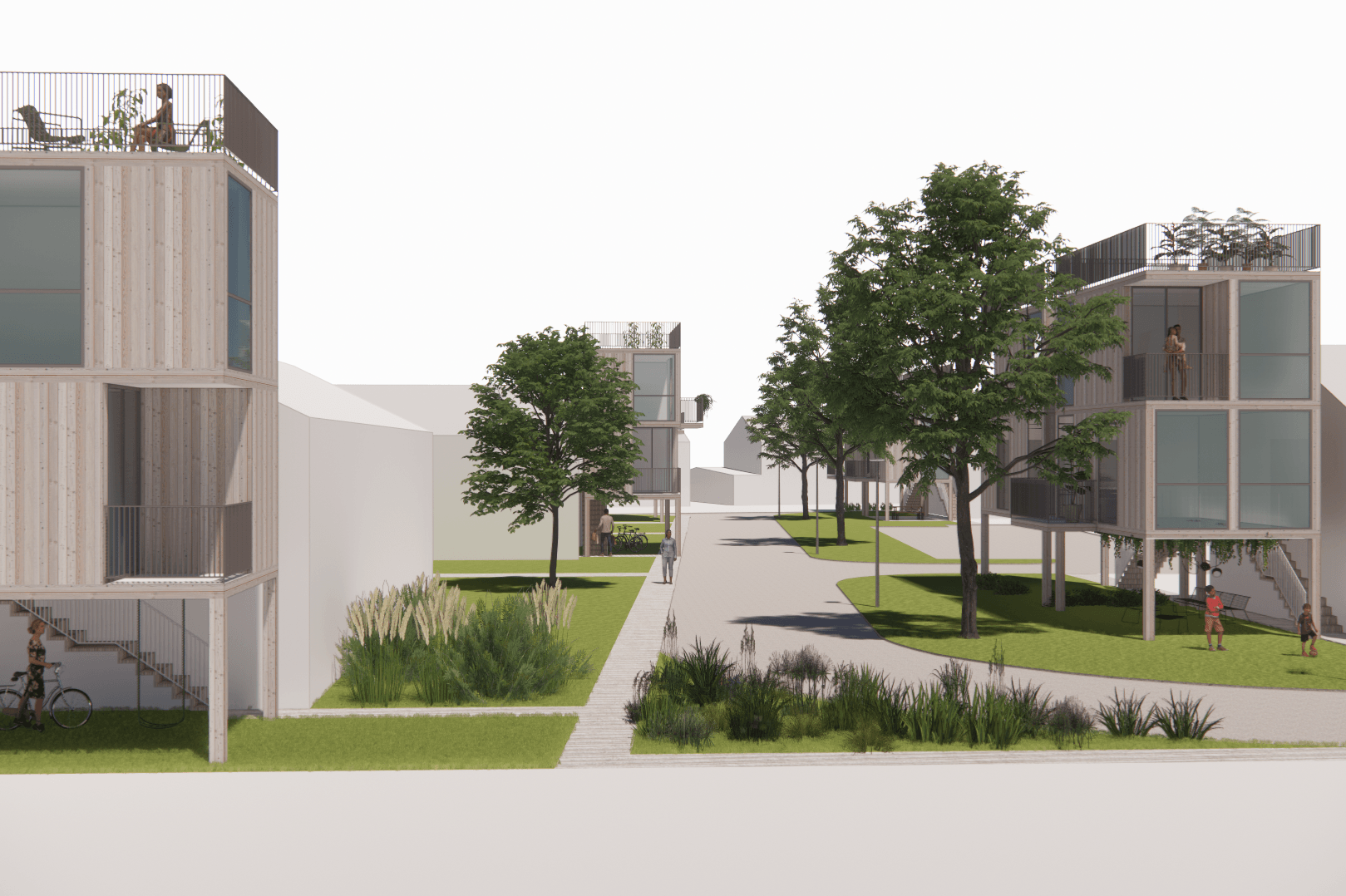 Het plaatsen van al dan niet tijdelijke woningen bovenop garageboxen biedt woonruimte aan nieuwe bewonersgroepen, wat de kwaliteit van de straat verlevendigd. Toegang vanaf de straat en herinrichting van het straatprofiel voor gemengd gebruik loopt vooruit op een toekomst waarin de garageboxen zelf een andere functie krijgen: ze worden bij de woningen betrokken als entreeverdieping, of bieden woon-werkgelegenheid.