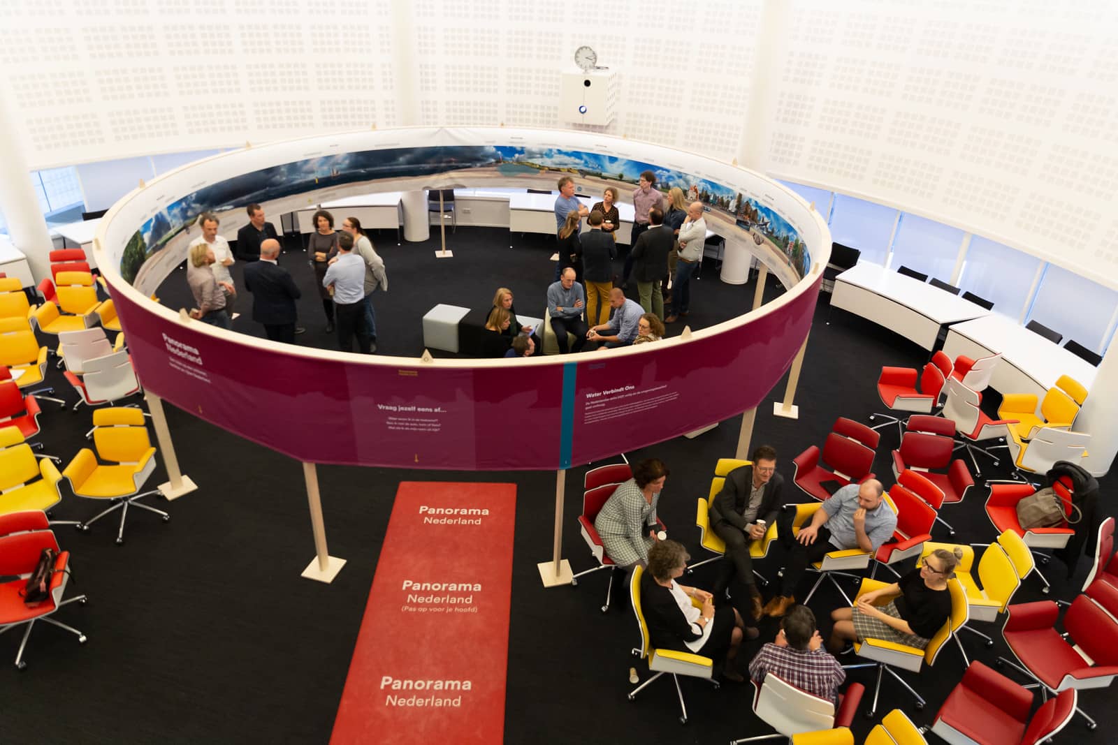 Panorama Nederland is een publicatie, maar ook een fysiek panorama: een 360 graden verbeelding op ooghoogte waarin bezoekers zelf een kijkje kunnen nemen in de toekomst. Panorama Nederland reisde in 2019 en 2020 door het hele land. Het stond in provinciehuizen, bibliotheken, buurthuizen en musea en overal gingen mensen met elkaar in debat over de toekomst van ons land. Bekijk de impressie van de tour.