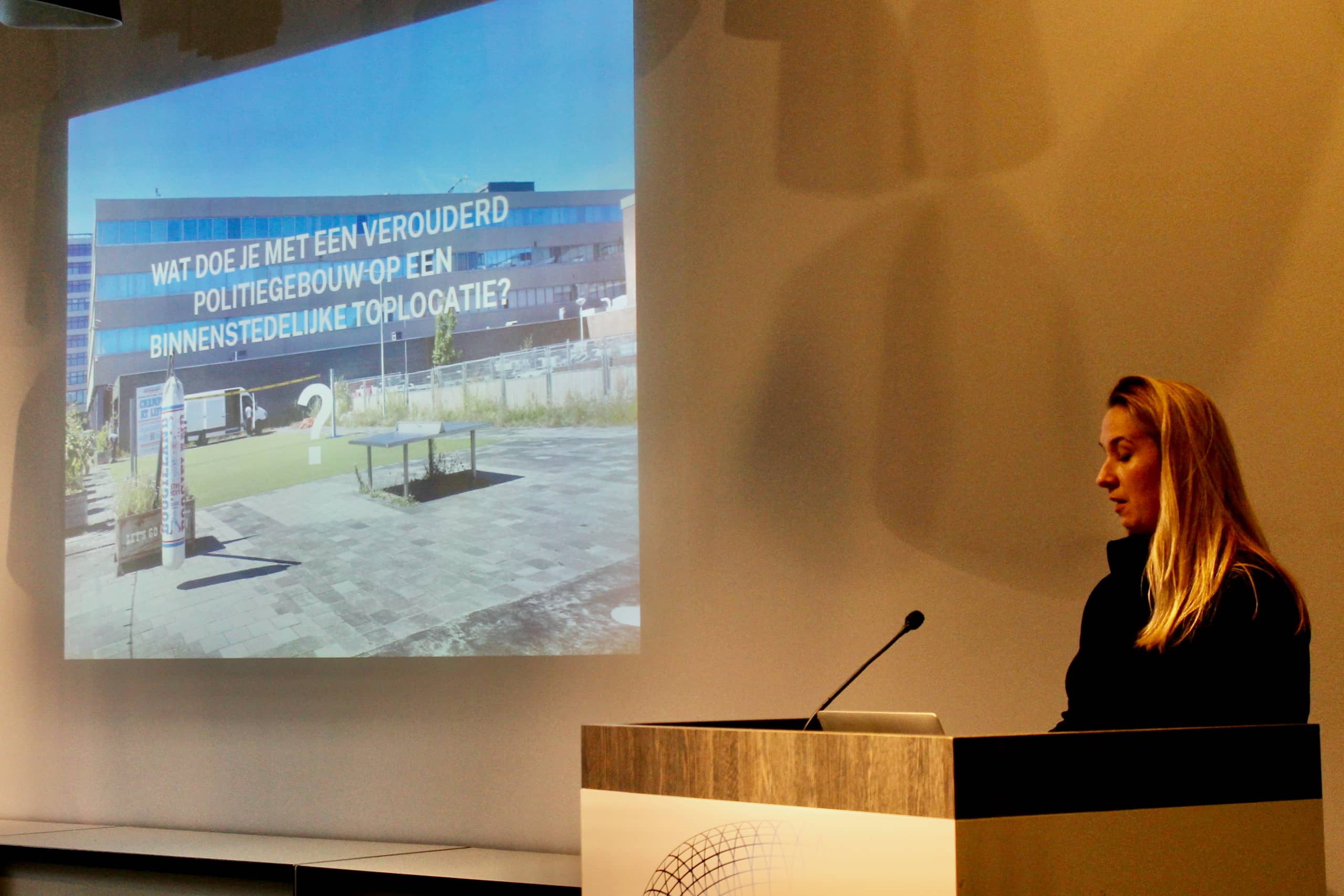 Recreëren kan ook in het gebouw waarin tegelijkertijd het politiebureau zit. Young Innovator Kasia Nowak ziet zeker nog toekomst voor een jaren’70 gebouw als het Amsterdamse politiebureau ‘De Eenhoorn’. ‘Met culturele voorzieningen onder hetzelfde dak krijgt de politie een ander imago’, vertelde ze. Het kan wat haar betreft ook een zwembad zijn, als je dat grote gesloten gebouw maar verbindt met de omgeving.